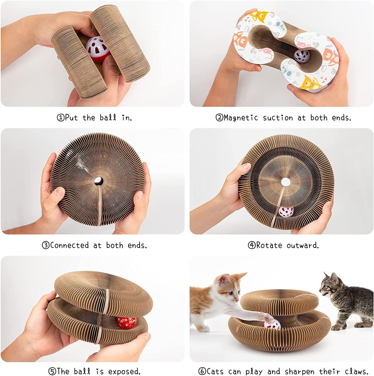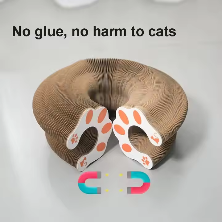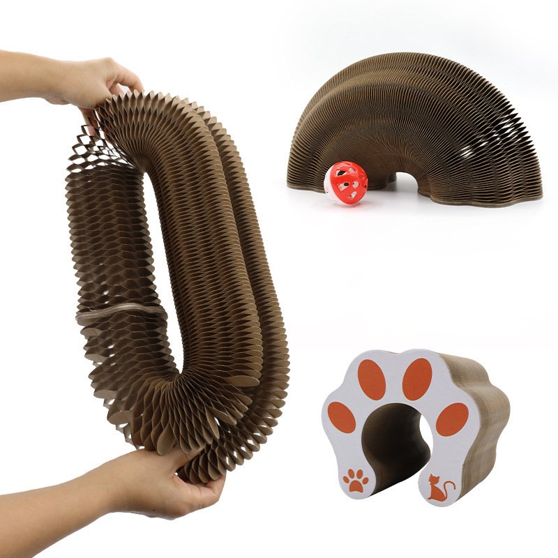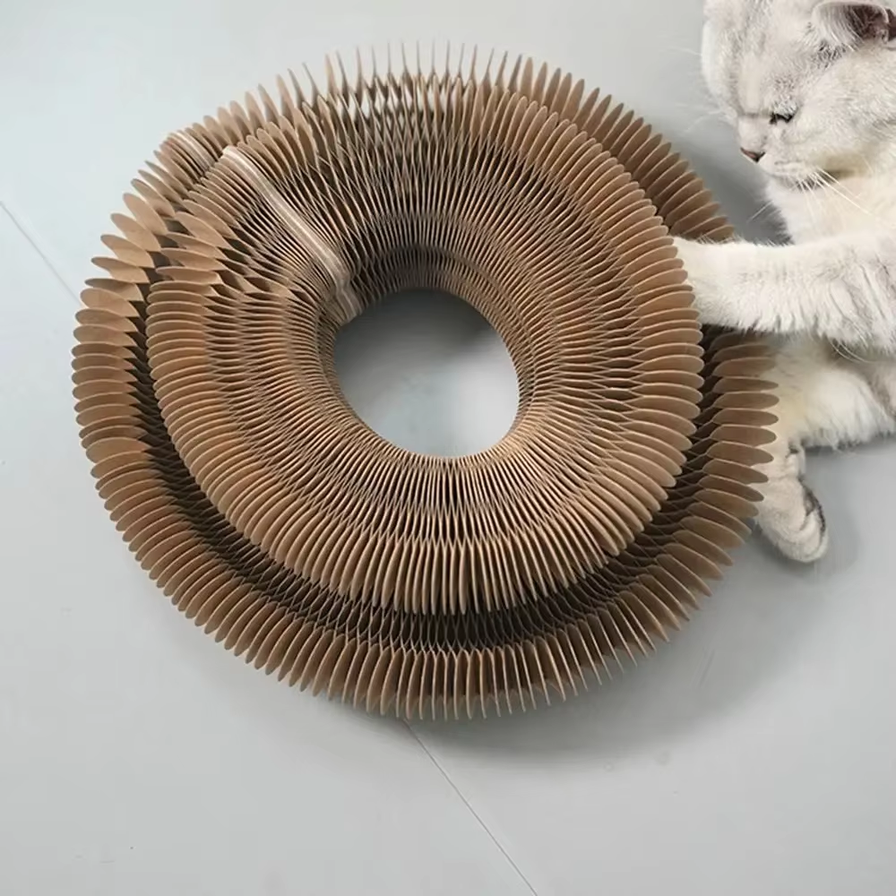 A foldable wood grain corrugated paper cat scratching board, the core features are environmental