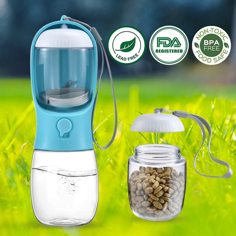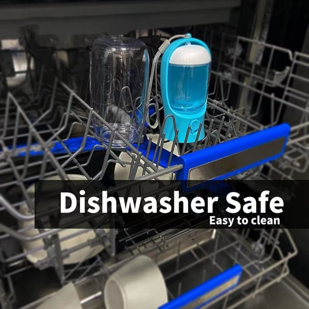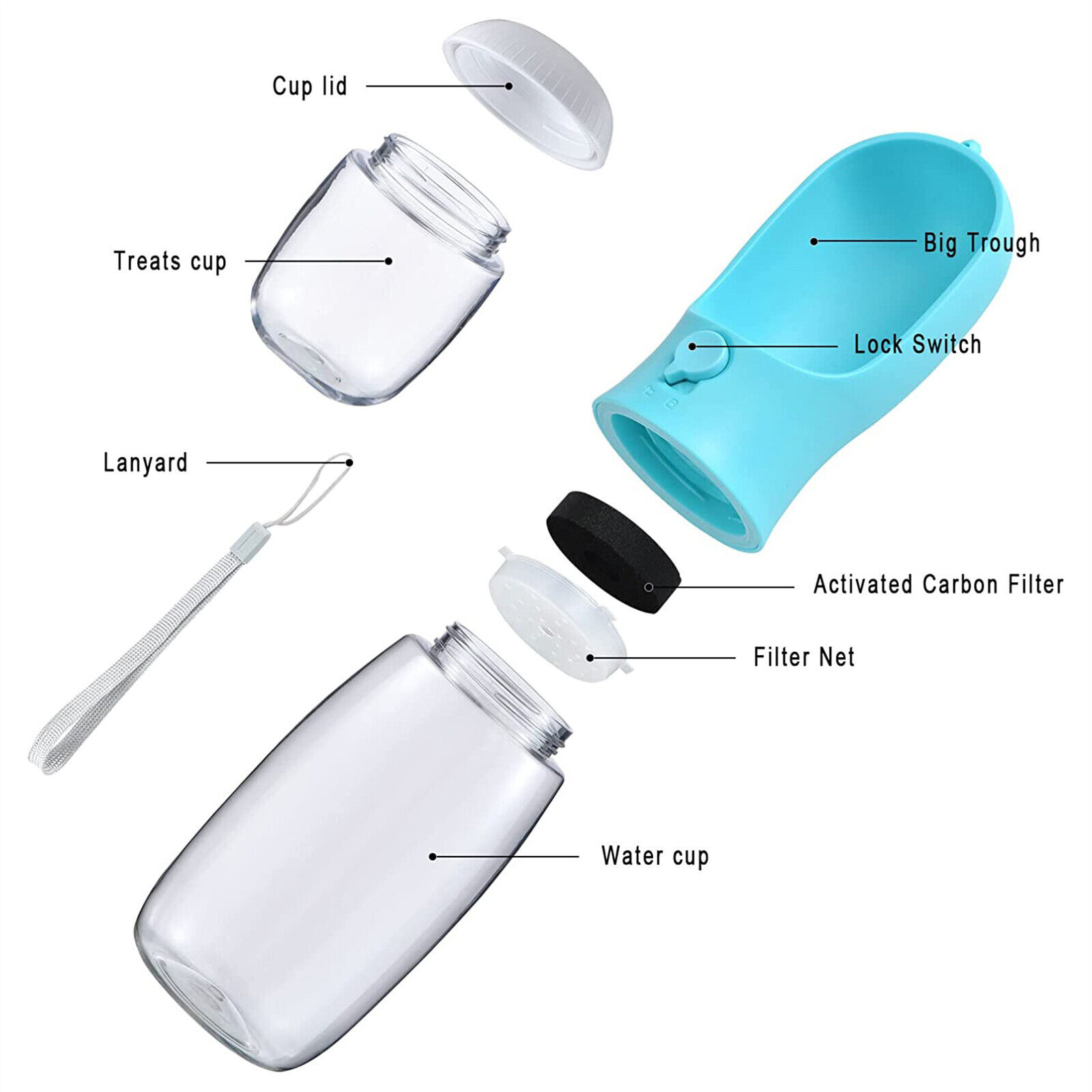 This portable dog water bottle is made of high quality food-grade plastic.Durable and recyclable, easy dismantling and cleaning. It will keep your pet health and vitality. Enjoy the safe and funny outdoor act with your pet.