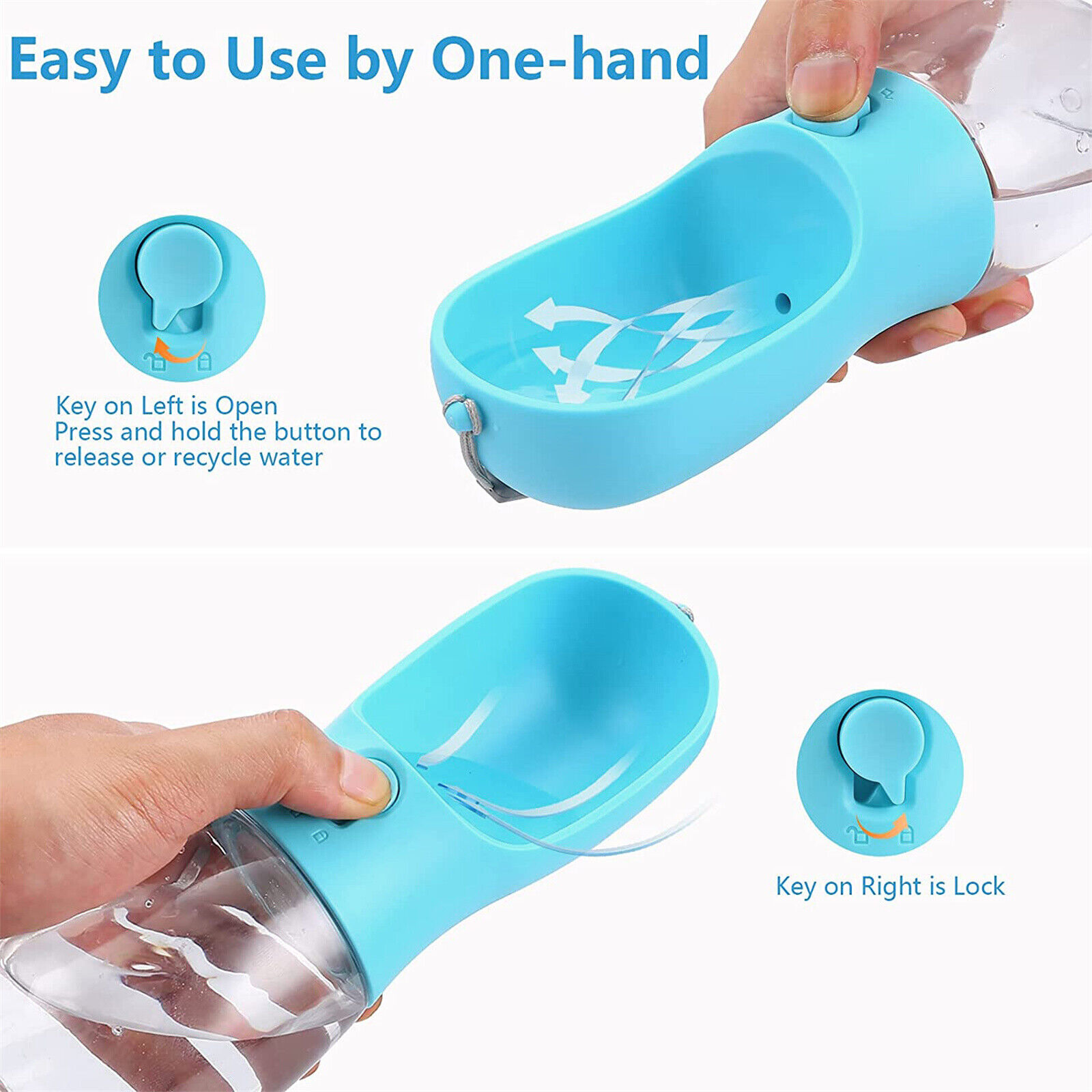 This dog water dispenser is designed with silica gel seal ring which can prevent water leakage efficiently. One-key lock further make sure the water doesn’t leak and you can put dog water bowl in your backpack without worrying about its leaking.