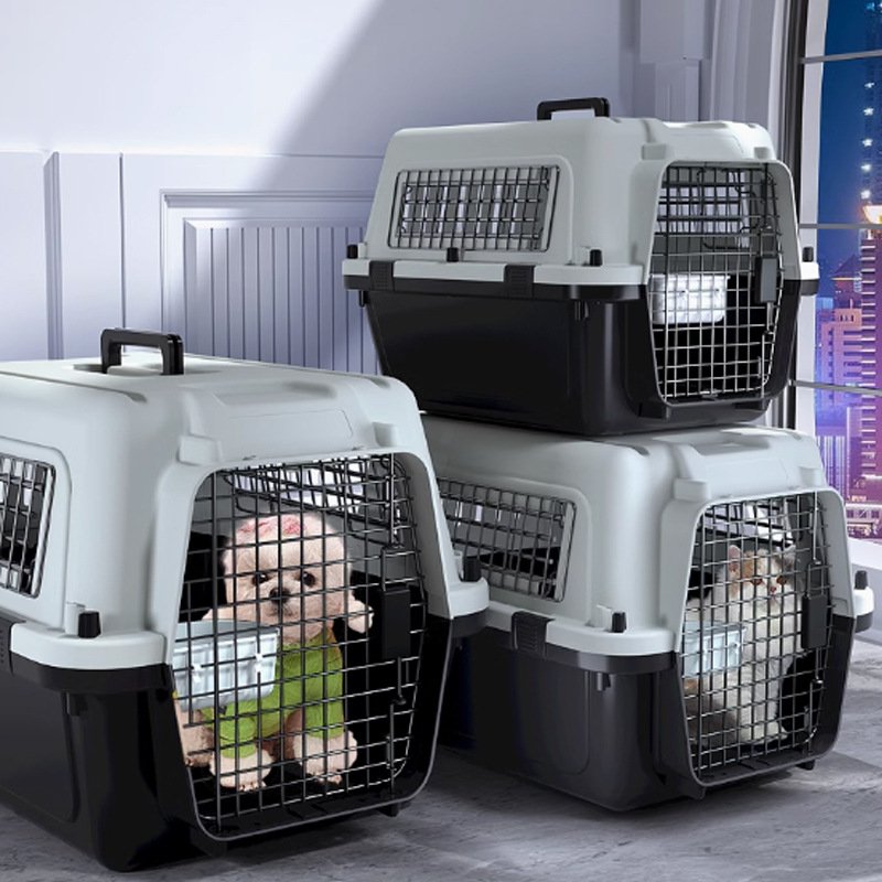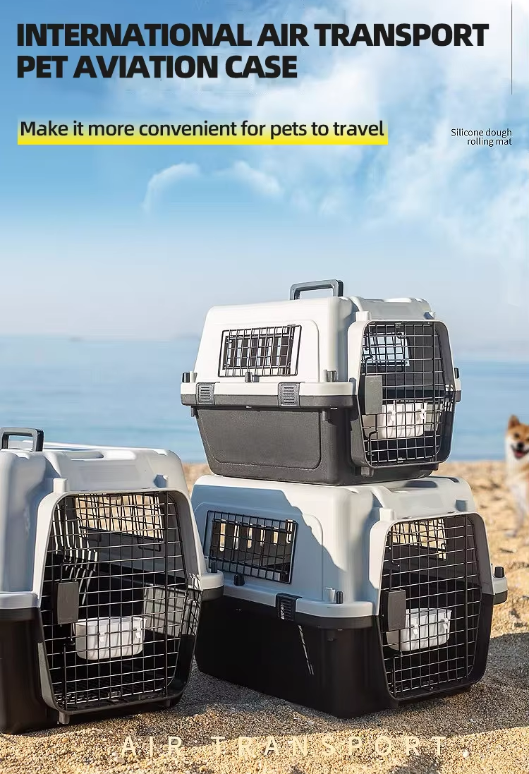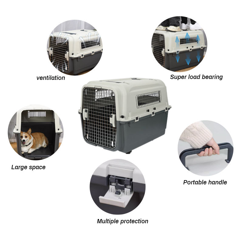 This foldable pet carrier cage is made of eco-friendly plastic and metal, designed for airline-approved travel. It features a customizable size, logo, and packaging, with a push-up closure type suitable for dogs, cats, and small animals.